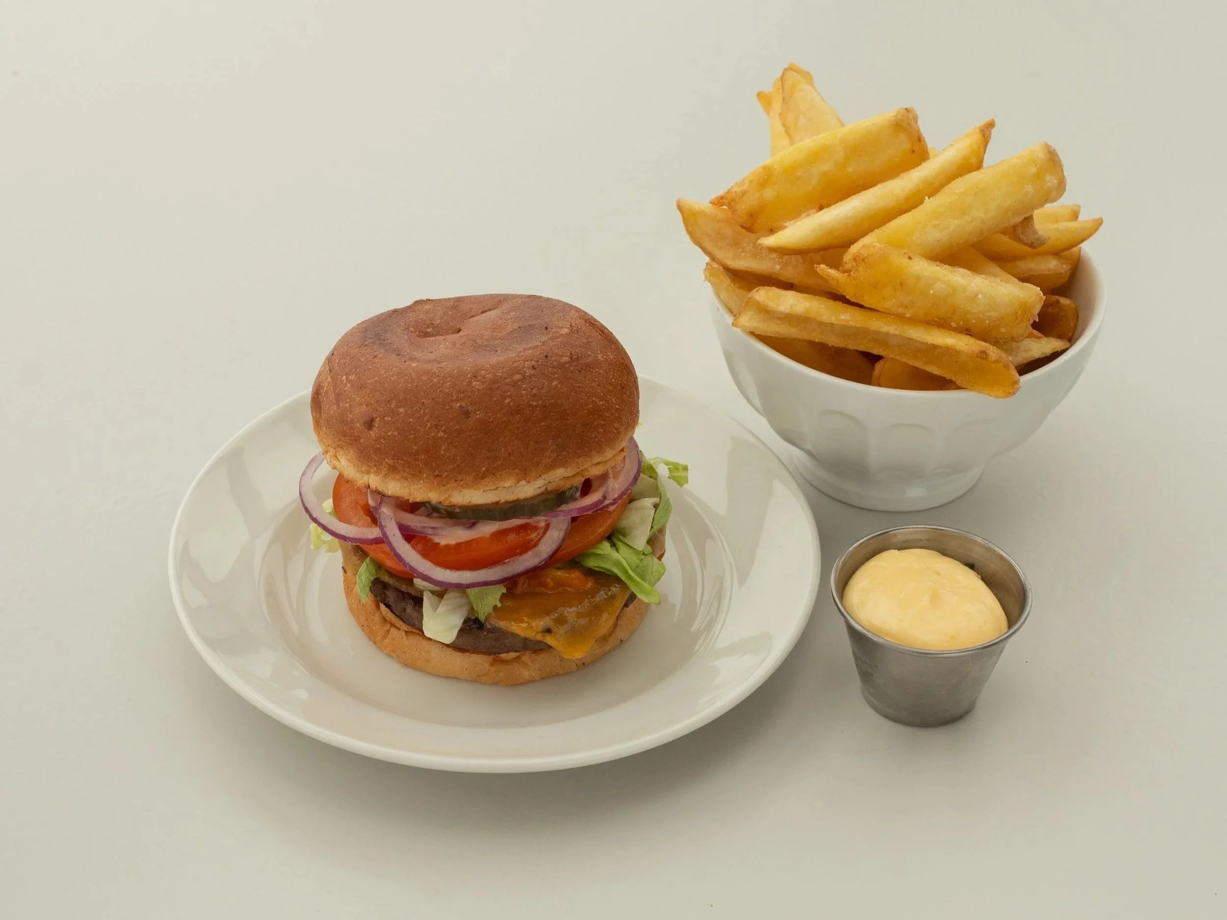 Vi serverer en håndfuld enkle retter som en saftig burger, sprøde fritter, cæsarsalat og dagens gryderet. Det er mad lavet med samme kærlighed til råvarer som på Thorvald, men pakket til at tage med på kajen, i båden eller hjem.